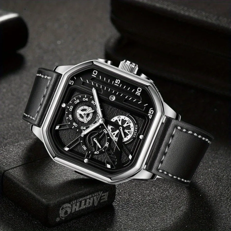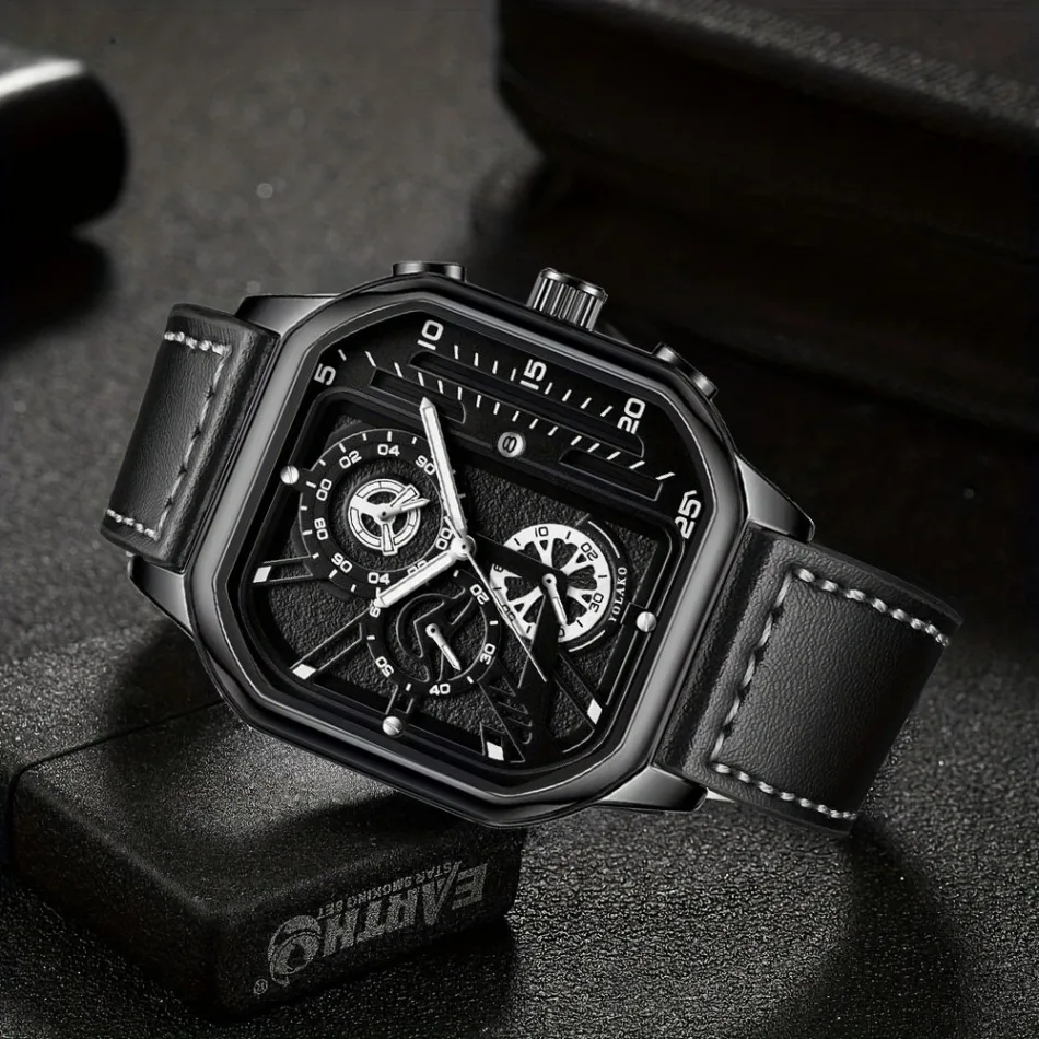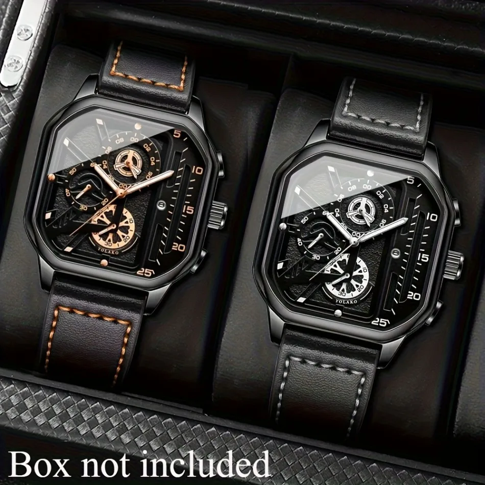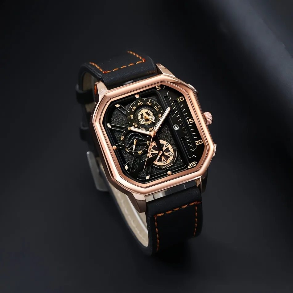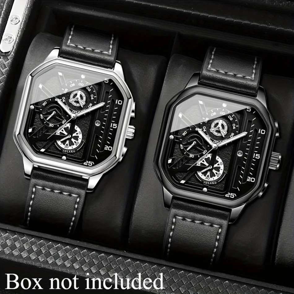 2-Piece Luxury Men'S Leather Strap Quartz Watch Set with Calendar - Perfect Gift for School, Graduation, Men Gift